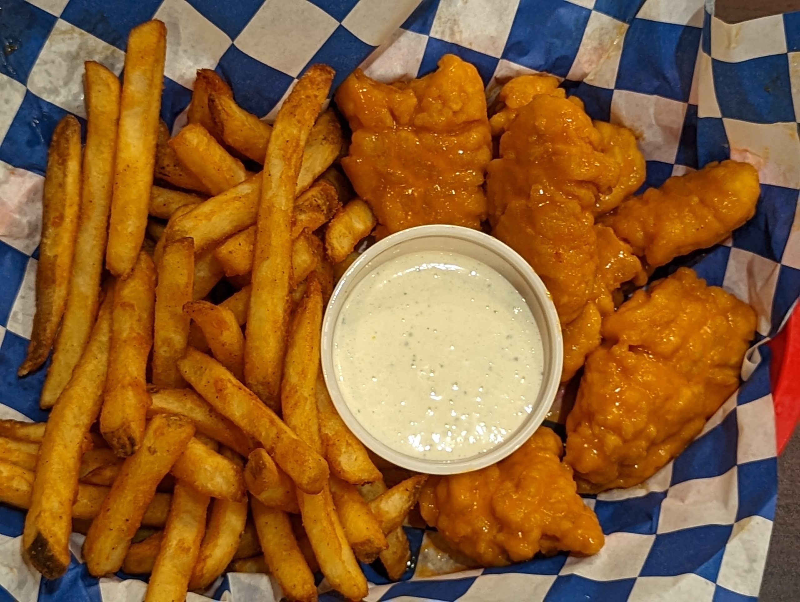 - 3 large chicken tenders served with honey mustard dipping sauce